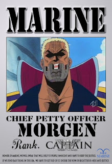 ครอบครัว ลูกชายเฮลเมปโป นาวาเอก มอร์แกน(Captain Morgan) เป็นคนที่มีรูปร่างสูงมีผมสีขาวและทองมีจุดเด่นที่ขากรรไกรเหล็กและมือขวา ที่เป็นขวานขนาดใหญ่นิสยของเค้าแปรปรวนจากการสู้กับ คุโระและถูกสะกดจิตเมื่อครั้งอดีตเป็นคนบ้าอำนาจและชอบให้เรียกเค้าว่าผู้ พันซึ่งในความจริงเค้ามียศเพียงนาวาเอกแต่ถึงแม้ว่าจะดูเสียสติไปบ้างแต่ มอร์แกนจัดว่าเป็นคนที่มีความสามารถสูงในด้านการต่อสู้และจัดว่ามีความรู้ใน ผลปีศาจต่างจากคนส่วนมากในอิสต์บลูที่ไม่ชื่อในผลไม้ปีศาจ